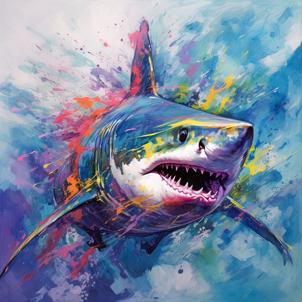 Dive into a captivating world of digital art where the power of artificial intelligence breathes life into a stunning and vibrant shark portrait. Created by the ingenuity of AI algorithms, this masterpiece brings forth the awe-inspiring presence and majesty of the shark in a kaleidoscope of colors. Every brushstroke, guided by the AI's intelligence, meticulously captures the sleek form, sharp features, and commanding presence of these magnificent creatures. The vibrant hues and intricate details seamlessly blend, immersing viewers in the depths of the ocean and evoking a sense of strength, power, and mystery. This colorful shark portrait, a testament to the symbiotic fusion of technology and artistic vision, invites admirers to appreciate the beauty and diversity of marine life in a way that transcends traditional art forms, showcasing the extraordinary potential of AI in the realm of digital art.
